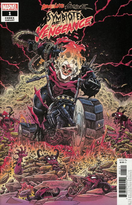 Carnage is hunting down previous symbiote hosts for codices that will unlock a direct link to the symbiote god Knull! And he’s not asking nicely…he’s taking them by force! Which means former Ghost Rider Alejandra Jones is next on his hit list! With Johnny Blaze preoccupied as Hell’s king, it’s up to Danny Ketch to ride again and keep Alejandra out of Carnage’s clutches! This issue takes place before Absolute Carnage #1 . ABSOLUTE CARNAGE TIE-IN