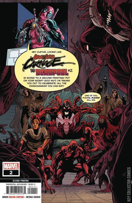 CARNAGE’S MOST WANTED! Having hosted five separate symbiotes, Deadpool becomes a prime target for codex hunters. Dark Carnage puts a big target on Deadpool’s back, and the most dangerous forces in the Marvel Universe are on his trail! There’s only one way out…and it will be ABSOLUTE CARNAGE. ABSOLUTE CARNAGE TIE-IN