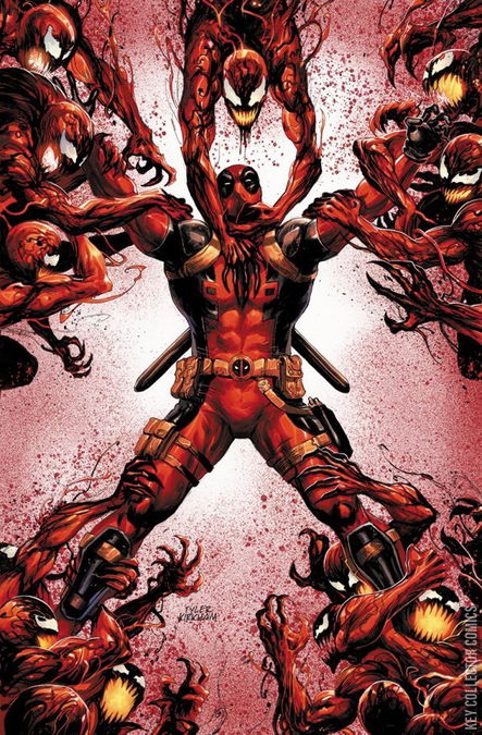 ALL MY CODEXES LIVE IN TEXAS* By “Texas” we mean “Deadpool’s spine.” Sorry, we just couldn’t NOT do that pun. With his potent combination of codexes from different symbiotes, the fate of the fight between good and evil lies within Deadpool! He’s…on the side of good, right? Honestly, sometimes it’s hard to tell. I mean, Spider-Man likes him, right? Kind of? That’s…something. ABSOLUTE CARNAGE TIE-IN