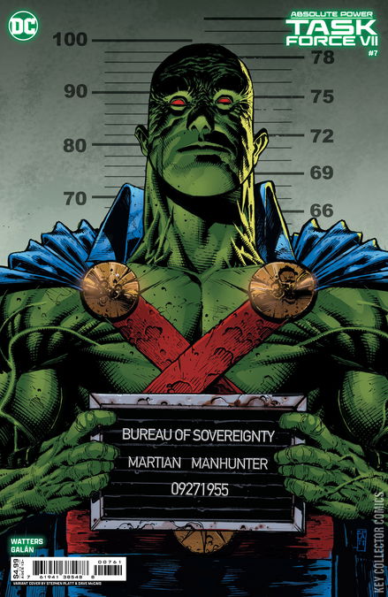 CAN THE POWERLESS HEROES WITHSTAND GLOBAL GUARDIAN?! The Trinity of Evil achieve total domination over Earth's super-powered protectors? But what of the heroes NOT of this Earth? Just as Kal-El of Krypton before him, J’onn J’onZz of Mars has felt the devastating effects of Waller's TASK FORCE VII fighters as they continue their mission of siphoning metahuman power across the globe...but hope glimmers even in the face of the ghastly GLOBAL GUARDIAN, and a new generation of fighters from every corner of the world have joined forces to rise up! It's the finale of TASK FORCE VII as we near the grand finale of the epic ABSOLUTE POWER event!