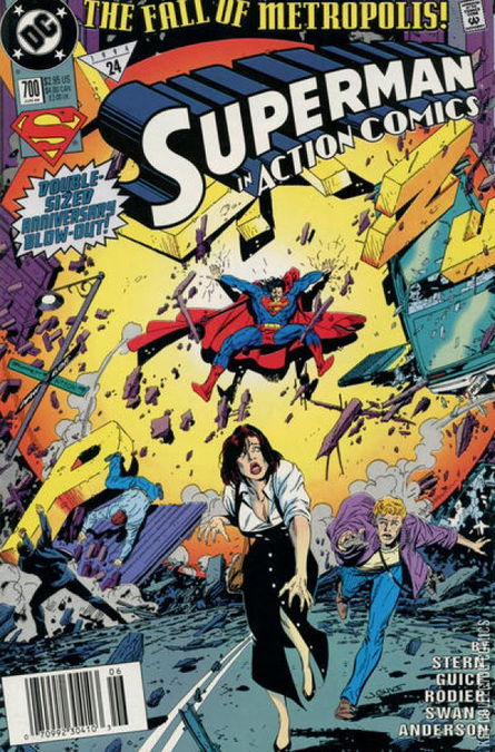 FALL OF METROPOLIS, PART 1 OF 5 - SWAN SONG Continued from Adventures of Superman #513 Can Superman, Supergirl, and Superboy save Metropolis? Meanwhile, wedding bells can be heard in Smallville as Pete Ross marries Lana Lang! Continues in Superman: The Man of Steel #35 1994 Triangle #24