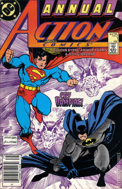 "Cry Vampire!" Guest-starring Batman. Written by John Byrne. Art and cover by Arthur Adams. The World's Finest may have bitten off more than they can chew when they investigate a series of murders and find themselves confronted with the immortal macabre power of the vampire! NOTE: Fantastic horror story with amazing art by two of the all time greats.