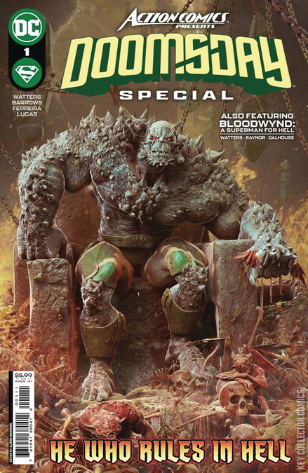 DOOMSDAY RULES...IN HELL! It is a creature beyond reason--and the only force in the universe strong enough to kill Superman. It's Doomsday, the living embodiment of death, destruction, and evolution! In the wake of Dark Crisis and Lazarus Planet, King Doomsday now sits on a throne of skulls across a river of blood, holding court over the demons that swarm in the depths of Hell...and he may have just found a way back to the land of the living. It's now up to Supergirl and Martian Manhunter to drive the beast back and see that he never again returns to our earthly plane--even if they must die to do it! Plus: the return of Bloodwynd, the debut of the Doomhounds, and a clue to the next big Superman event!