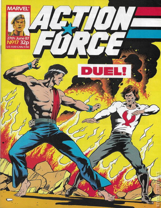 "Meditations in Red" confirms not only the existence of Shang-Chi in Earth-120185, but also the existence of Batroc, Iron Fist, and Elektra through Quick Kick's mention of them in the story. However, since this story was done only because Action Force began reprinting the Shang-Chi stories with issue #18, it is unknown if this story is canonical with Earth-91274, the continuity of the G.I. Joe and Transformers comics solely published in the US. The histories of Earth-120185's Shang-Chi (and related characters), along with Iron Fist, Elektra, and Batroc may vary from Earth-616 as they do not play a prominent role (nor are ever mentioned again) in the adventures of Action Force or Transformers UK. After this issue, Shang-Chi stories would run from Action Force #18 to #29, reprinting only #29 to #31.