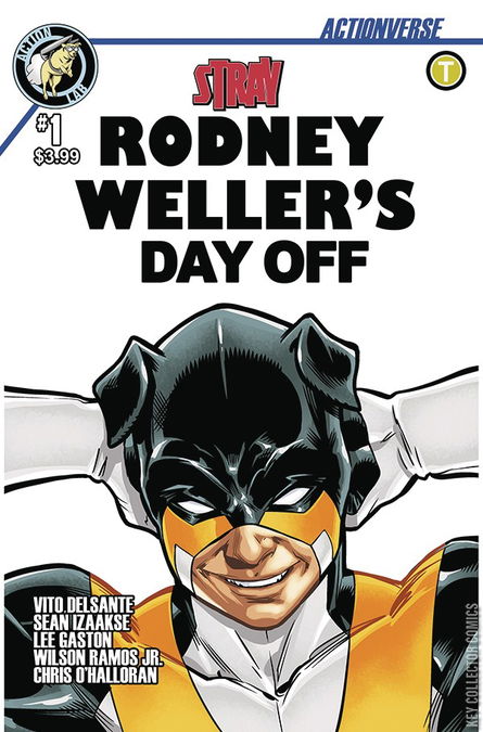 From the ashes of the Actionverse, Stray is back! New York City is on the brink of a civil war, and only Stray can stop it! What threat from his past has come back to haunt him, and what does the formation of TeenAegis have to do with it? Join as as we look back at 'The Rottweiler Years' and introduce artist Lee Gaston to the Actionverse! 80's Homage cover by Sean Izaakse and retailer incentive cover by David Golding (Infested Earth)!
