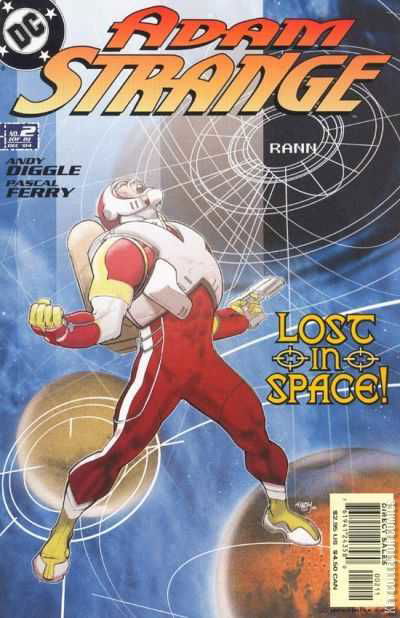 Continuing the thrilling new adventures of DC's premiere science-fiction hero! Adam Strange survives an alien attack as he discovers clues to what's happened to his adopted homeworld, Rann! A LexAir flight is coming in to land at an airport, though the control tower says that it is unclear to land because of a couple strange dots on their radar – which happens to be Adam and the alien fighting. Adam tries to lose the missiles, but they are homing missiles and not only that, but they can learn from their previous mistakes. Adam brings out his blasters and shoots the tow missiles, but they are too close and Adam gets caught in the explosion sending him into a skyscraper under construction. Adam also realises that his jetpack should restart at any moment. The alien comes down and says Adam killed its boyfriend – the alien from issue #1 that Adam was fighting. He is to be brought alive, but all it wants is him dead. It launches another missile, and Adam jumps off the elevated level in the skyscraper and calculates that he has 12 seconds until the jetpack can restart itself. He spreads out his body to slow his descent and hits the restart button. He learns of the missile following him, but he can't just lose it. The missile learns from its mistakes. He hopes that it is a heat-seeking missile and takes off his jetpack, letting the missile slam into the alien who falls to the street from the building. Adam then interrogates the alien, asking who had sent them. Just then, the armour begins a self-destruct sequence and persuades the alien to press the armour's upward thrusters. Adam holds onto the armour and both of them shoot up into the air and steers it up there. The alien asks how Adam is going to get it out of its armour, but he just lets it explode up there. He is now convinced that Rann's explosion was faked. Adam makes his way back to his apartment and looks behind the fridge where a power-suit...