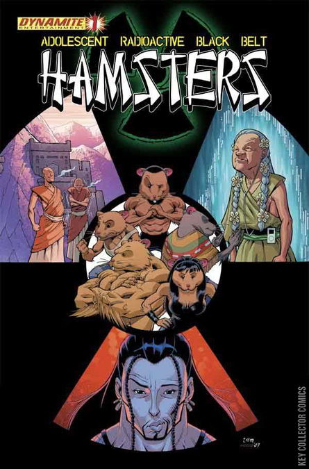 In 1977, NASA inexplicably sent four hamsters into space to investigate a strange mass of radioactive gelatin that was hovering over the Earth. Due to exposure from the radioactive mass, the four hamsters quickly changed, evolving into something new. Something adolescent. Something radioactive! Crash landing in the Himalayas, the Hamsters were found by a hidden monastery of monks who nursed them back to health, training the group in the martial arts. Now they're back and Dynamite has them! Under the watchful eye of original series creator Don Chin, writer Keith Champagne (Countdown: Arena) is joined by artist Tom Nguyen for a comic book series unlike the world has ever seen! Ninjas! Barbarians! Huns! Monks! Hamsters! This one's got it all! Look for the special Hamsters alternate cover by Mice Templar's Michael Avon Oeming! This issue focuses on the new team of Hamsters, including Jean-Claude, Rock, Lucy, Arnold, and Steven, and introduces the villain, Genghis Khann. Khann's forces invade the Hamster's old monastery, and the new team tries to get it back.