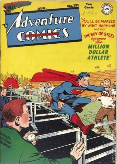 The Million-Dollar Athlete starring Superboy, pencils by Al Wenzel, inks by George Roussos; Coach Kandinski tries to turn Clark into an athlete. The Undersea Post Office starring Aquaman, script by Otto Binder, art by John Daly. Pirates of Plunder starring Shining Knight, art by Chuck Winter. Targets For Tonight starring Green Arrow, art by George Papp. A Crime a Minute starring Johnny Quick, script by Otto Binder, art by Mort Meskin.