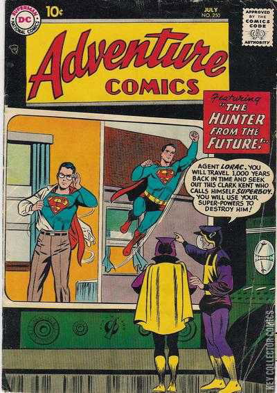 0. Cover penciled by Curt Swan, inked by Stan Kaye, lettered by Ira Schnapp. 1. Are You a Litterbug (public service announcement / written by Jack Schiff, drawn and lettered by Henry Boltinoff). 2. The Imposter from the Year 2958 (written by Bill Finger, drawn by John Sikela, lettered by Joe Letterese / Superboy [Clark Kent], Jonathan Kent, Martha Kent, Lana Lang, Professor Lang). 3. Honey in Hollywood (short comic story by Henry Boltinoff / reprinted from The Adventures of Dean Martin & Jerry Lewis #2). 4. Twin Twisters (activity by Martin Naydel / reprinted from The Adventures of Dean Martin & Jerry Lewis #26). 5. The Green Arrows of the World (written by either Bill Finger, Ed Herron or Dave Wood, drawn by Jack Kirby, inked by Rosalind Kirby, lettered by Joe Letterese / Green Arrow [Oliver Queen], Speedy [Roy Harper] / first appearance of Earth One Green Arrow and Speedy). 6. Animal Wonderworld! (Short story by Martin Naydel / reprinted from The Adventures of Rex the Wonder Dog #3). 7. Chuckle Box (text article). 8. The Guinea Pig of the Sea (written by Joe Millard, drawn by Ramona Fradon, lettered by Joe Letterese / Aquaman [Arthur Curry]). 9. Little Pete (short comic story by Henry Boltinoff).