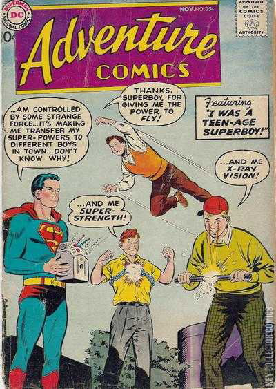 1. I Was a Teen-Age Superboy 2. Private Pete (gag page by Henry Boltinoff)3. The Menace of the Electric Man (Aquaman)4. Look to the Stars! (public service message written by Jack Schiff)5. Tricksy (gag page by Henry Boltinoff) 6. The Green Arrow's Last Stand (written by Dave Wood : reprinted in: Super-Team Family #9, Green Arrow By Jack Kirby (2001), Showcase Presents Green Arrow (2006 series) #17. Cowboy Talk (factual article by Martin Naydel)
