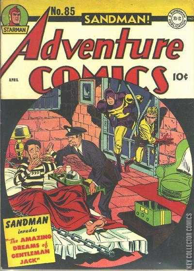 The Unholy Dreams of Gentleman Jack, script and pencils by Jack Kirby, inks by Joe Simon; Hounded by dreams of the Sandman, when Gentleman Jack Jarvis is released from prison he swears that he will one day live in a suite of cells, come and go as he pleases with guards waiting on him hand and foot......but the Sandman will suffer in a solitary cell and made to die slowly! The Constellations of Crime! starring Starman, script by Gardner F. Fox, art by Emil Gershwin. The Scrap For Scrap starring The Shining Knight, script by Joe Samachson, art by Louis Cazeneuve. Way Down Yonder in the Corn Field starring Genius Jones, script by Alfred Bester, art by Stan Kaye. The Mystery of the Monster Bird starring Manhunter, script by Jack Kirby, art by Pierce Rice. The School For Heroes starring Mike Gibbs, Guerilla, script by Joe Samachson, art by Irving Tirman.