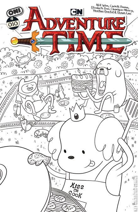 It's chaos at Hot Dog Princess's cookout! We're raising the steaks in this issue of Adventure Time from cartoonist/writer Nick Winn (Bloody Mary) and stellar artist Corinth Boone (Peony)! Finn and Jake are on a quest to create their own Enchiridion, and it's taken them to the Hot Dog Kingdom, where Robot Finn is continuing to cook up some havoc. Concerned and confused (or is that indigestion?), can our dynamic duo take what Robot Finn is dishing out? Or will they end up being burned? It's a dog eat dog world in this next issue of 'Handbook Heroes'! Plus: The continuation of our totally mathematical Lemonhope backup story by writer Elizabeth Brei and artist Cleonique Hilsaca—featuring the cutest candy-dog to ever graced the land of Ooo!
