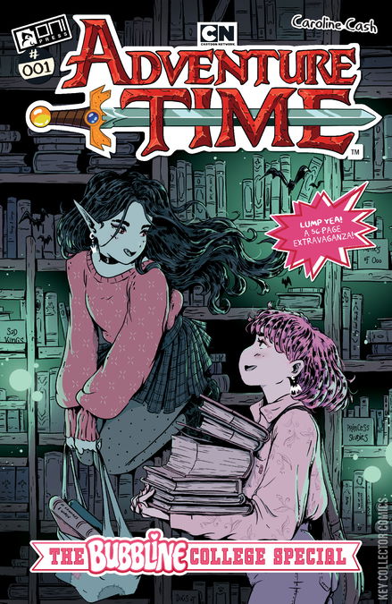 It’s . . . ALTERNATE UNIVERSE TIME! From the mind of Eisner Award–winning cartoonist Caroline Cash (PeePee PooPoo), experience all the fun of college (and none of the stress) in this giant-sized spectacular starring Princess Bubblegum and Marceline! What, do you think Ice King should get to have all the fun?! Heck nah! Fanfics are cool and all, but you know what’s even cooler? Peering into alternate universes—and Prismo’s got the perfect one in mind . . . Princess Bubblegum has just started school at Ooo University (double majoring in chemistry and princess, of course!). But between difficult roommates, overreaching bodyguards, assassination attempts, and—more importantly—a full class schedule, will Bubblegum be able to survive her first year in college?! With the help of one super-cool, super-mysterious flying vampire who she is mayybeee falling in love with, it shouldn’t be all that hard. Turns out Marceline and Bubblegum are made for each other in any universe!