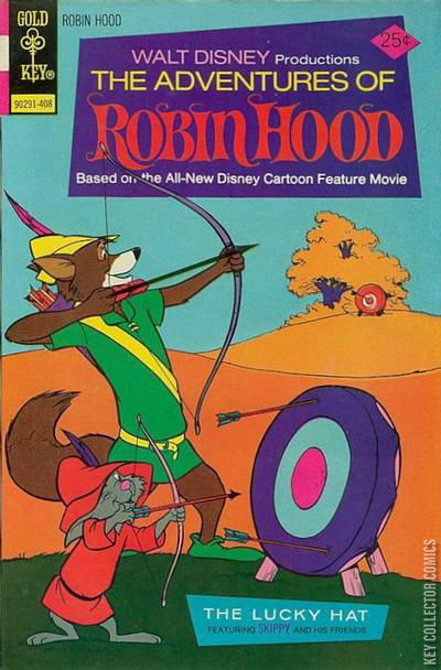 Based on the Disney Cartoon Feature Movie. The 21 page Robin Hood reprint story "The Lucky Hat" is drawn by Al Hubbard. Plus: The 4 page Skippy story "Ring Out Glad Bell" is drawn by Pete Alvarado. Cover price $0.20.