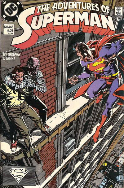 THE LEDGE Saving a suicidal man is beyond even the Man of Steel's abilities...but not Gangbuster's. Also, the Morgan Edge/Lex Luthor war heats up! Written by Jerry Ordway, with art by Ordway and Dennis Janke. Cover by Ordway.