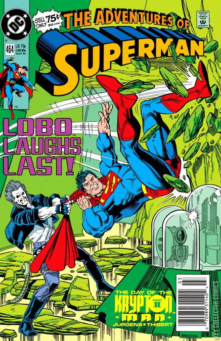 Cover pencils by Dan Jurgens, inks by Brett Breeding. [The Day of the Krypton Man, Part II]: Blood Brawl, script and pencils by Dan Jurgens, inks by Art Thibert; Lobo finds the Fortress of Solitude, and has a vicious battle with Superman. Superman pretends to be dead so Lobo will go away; Meanwhile, Draaga and K'raamdyn get stranded in space. Story continued from SUPERMAN #41 and story continues in ACTION COMICS #651.