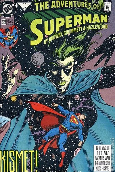 The epilogue of 'The Blaze/Satanus War,' continued from Superman (1987) #71. Superman's beliefs in right and wrong are shaken to their foundations when he tries to escape the neutral realm of Satanus and meets Kismet!