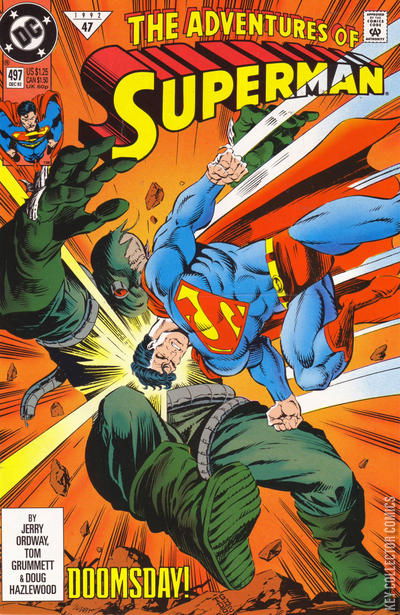 DOOMSDAY! PART 4 - UNDER FIRE Continued from Superman #74 With the Justice League beaten into retreat, Doomsday has at last found something that may be able to push back the Man of Steel himself! Continues in Action Comics #684 Weekly reading order -1992 #47
