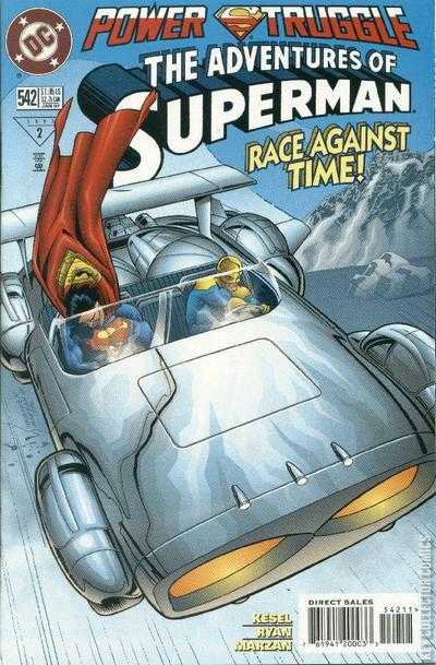 Power Trip! Story continues in: Action Comics #729"1997 2"--Triangle in upper left hand corner. Superman's "Power Struggle" just got worse, as the Man of Steel looks for some help from Project Cadmus; Unfortunately, he won't get those answers till he and the Guardian defeat the threat waiting for them there; Story continues in Action Comics #729.