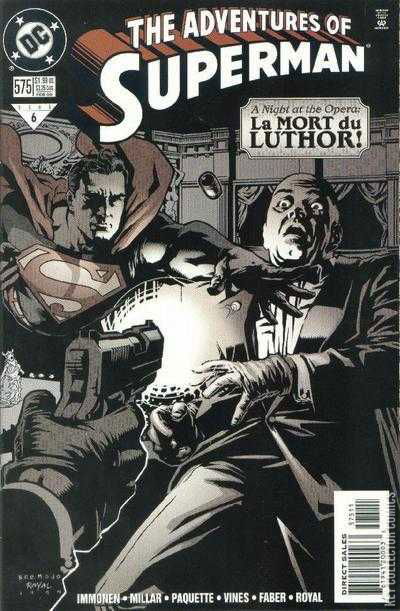 WRITTEN BY STUART IMMONEN AND MARK MILLAR; ART BY YANICK PAQUETTE; COVER BY LEE BERMEJO AND JIM ROYAL. Will Luthor die before the fat lady sings? It's a night at the opera for Mr. and Mrs. Clark Kent, but our hero's superheroic duties may ruin the evening for the couple. That is if an assasination attempt on Lex Luthor's life doesn't first! 2000 Diamond #6 Reprinted in Superman Returns: The Movie and Other Tales of the Man of Steel (DC, 2006 series)