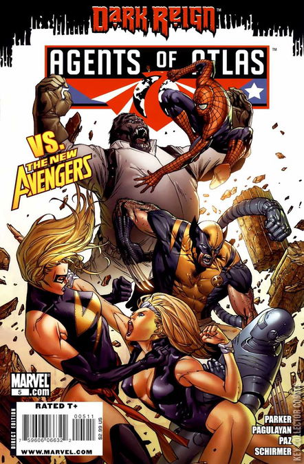Issue #5 brings the throwdown to end all throwdowns! The Agents of Atlas face off with the NEW AVENGERS!!! What a perfect time for M-11 to take one of his unpredictable courses of decisive action. Rated V for VIOLENT.