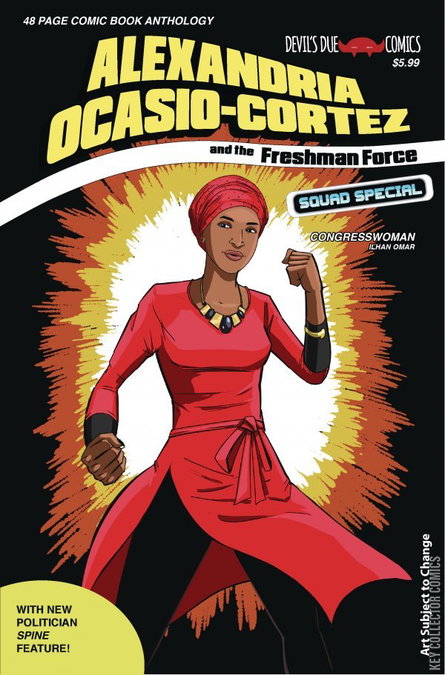 The sequel to the most talked-about comic book in the world in Spring 2019, now featuring stories inspired by the four Congresswomen now known as "the Squad!" In this anthology special, comic creators come together with stories from fun to furious, as the Squad engages in a series of super-heroic mini-adventures, taking on the establishment from within. Partial proceeds from this issue are going to immigrant charities Raices Texas and Second Families.