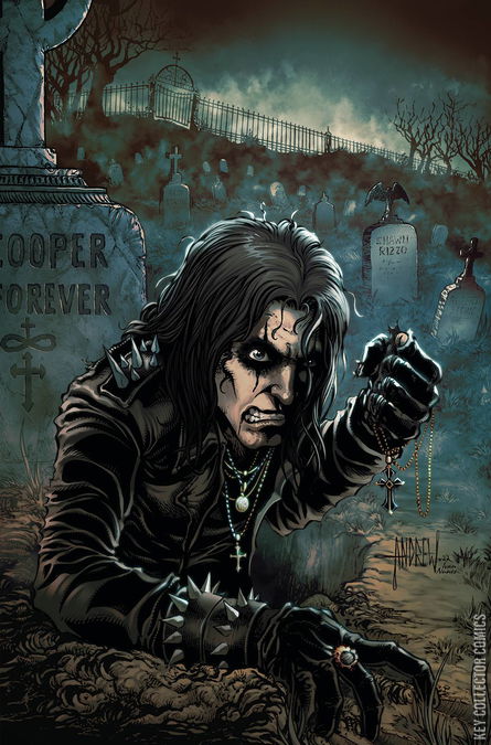 'Legendary rock acts are finding themselves attacked by demonic forces. The police investigate, but there's little to nothing they can do to stop the problem. At the same time, Alice Cooper has a new album out and is in the midst of a promotional tour. It's great to see all his fans again, but there's a disturbing trend happening in every city - more and more of his audience appear to be undead! Complicating matters, when he goes to bed at night he ventures into the Nightmare Place. When he awakens, he's in another city standing before a throng of fans, where he meets the Archangel Gabriel. Gabriel tells him there's a great music club called Burning Meat where the souls of legendary musicians hang out, watching the headliner - Lucifer - play his own personal style of rock music to the raucous applause of the demons in attendance. Now, Lucifer wants to take the show to Earth and the only thing stopping him is� Alice freakin' Cooper! Composed and arranged by writer RODNEY BARNES and artist EDU MENNA, this power anthem of an issue has its amps turned up to 11 with a trio of amazing covers from JASON SHAWN ALEXANDER (Rodney Barnes's collaborator on Killadelphia), the incredible STUART SAYGER, and master of horror ANDREW MANGUM - all capped off with a classic photo cover of the man himself: Alice Cooper! '