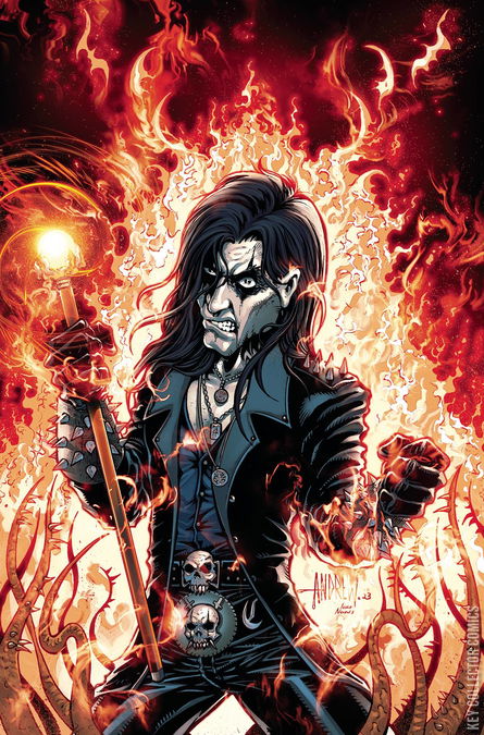 With his soul on the line, Alice Cooper readies himself for a no-holds-barred rock battle against the Prince of Darkness - and in a competition against the Father of Lies, Alice will need a little help from his friends. Luckily, he's on the side of the angels in this epic showdown between light and dark - but the Devil has never been known to play fair! Writer RODNEY BARNES and artist EDU MENNA's magnum opus is enhanced with cover art from STUART SAYGER, ANDREW MANGUM, and a timeless photo of mankind's last hope - Alice Cooper!