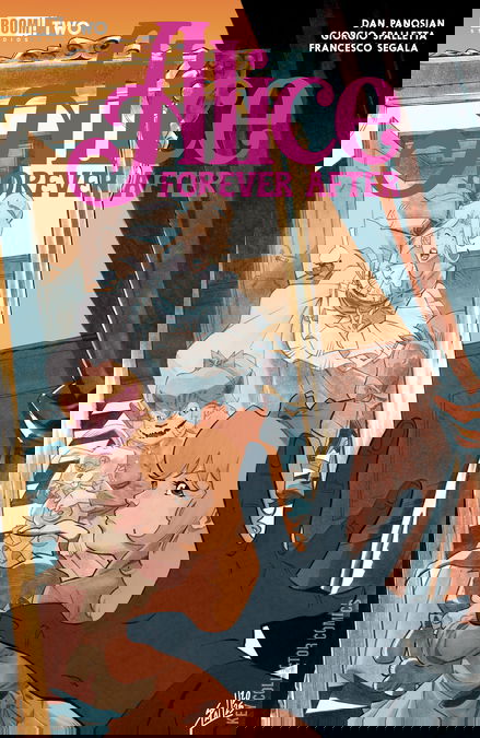 The opposing forces of reality and Wonderland threaten turmoil for Alice and her daughter! As Alice slips deeper under her father’s influence, her struggle with her own mind escalates, leaving her family and Evelyn in danger. Meanwhile, Evelyn’s imagination becomes the true doorway to Wonderland, placing her in the center of its unraveling fate! The Cheshire Cat’s influence grows more dangerous, pushing both worlds closer to ruin.As the sinister schemes surrounding them fall into place, are mother and daughter closer to the end than they realize? Time is running out as legendary creators Dan Panosian and Giorgio Spalletta dive deeper into the psychological rabbit hole in this reinterpreted fairy tale!
