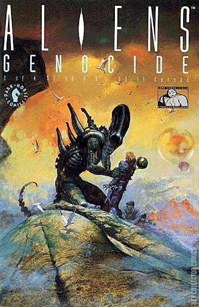 Written by JOHN ARCUDI and MIKE RICHARDSON. Art by DAMON WILLIS and KARL STORY. Colors and painted cover by ARTHUR SUYDAM. There's trouble aboard the U.S.S. Razzia, en route to the Alien homeworld to capture a Queen Mother. Daniel Grant has brought along his own "pet" Alien, but somebody wants it destroyed. Meanwhile, zero hour approaches, and even with the new Z-110 Acid Neutralizing Wardrobe, the Marines are in for a tough time against a whole planetful of Aliens!