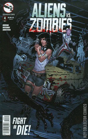 The penultimate issue of Aliens Vs. Zombies is here! When a meteor carrying the Zombie virus hits Earth it triggers the potential end of mankind. The last chance for humanity is the spacecraft full of Alien scientists tasked with eliminating the interstellar virus.