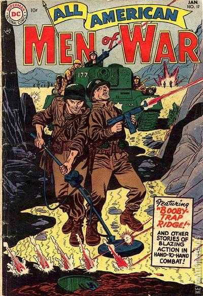 Booby Trap Ridge!This is the story of a soldier whose job was to sweep the roads in advance of the infantry! It would have been an easy job if his "broom" hadn't been a mine detector -- and the "dust" he picked up wasn't saturated with high explosives!Veteran Rookie!He would have given anything not to have drawn this assignment! He thought the army had made a mistake! He found out otherwise!Life Of A Dog Tag!Two identical small pieces of metal worn by every soldier on which is stamped his identity and blood type are the silent characters of -- Life of a Dog Tag!Blow Torch Pilots (Text only story)Frogman's Secret!You're Harry Brown, underwater demolition team leader, USN, one of Father Neptune's foster sons! Your name, rank, and serial number are all you're required to give as a prisoner! But right now, the Nazi Captain holding that Luger to your head wants to know more -- much more!