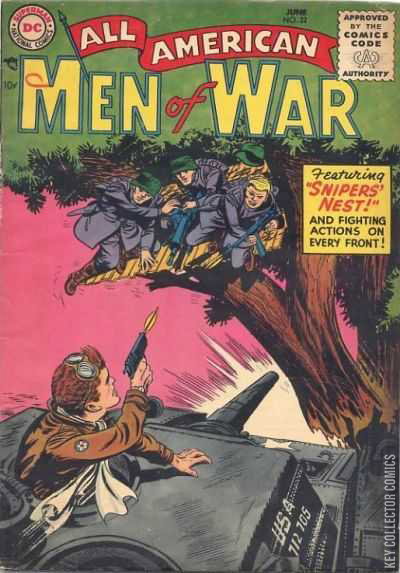 Sniper's Nest!There was something about this tank which was different than any other tank in the whole war! And it didn't change until it ran into the... Sniper's Nest!Booby-Trap Buddies!Roberts and Baker were booby trap experts -- and avid baseball fans! Then came the big game, one they didn't want to miss -- and also some big explosions were due, which they were supposed to prevent... and these they couldn't miss!Human Artillery!Sgt. Ed Powers always gave his men correct information! But, somehow he was always proven wrong! Finally, he found the only way he could keep his word was by becoming... Human Artillery!Mark of the Sailor (Text only story)Man Behind the Flintlock!Daniel Adams, son of a gunsmith, made flintlocks, repaired them -- and watched as soldiers carried them into battle! But he wasn't a happy youth -- for he thought his place was up at the front, with the others -- firing his own guns!