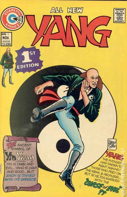 Adventures with Yang, a martial arts avenger who has sworn to fight against those who prey on the weak and helpless. Issue features a book length story "Part 1 - Yang the Slave" and "Part 2 ? Yang Meets Yin" which tells Yang's origin and his first adventure. Issue also has one-page text story "The Wisdom of Wu." Story by Joe Gill & art by Warren Sattler. Cover price $0.20.