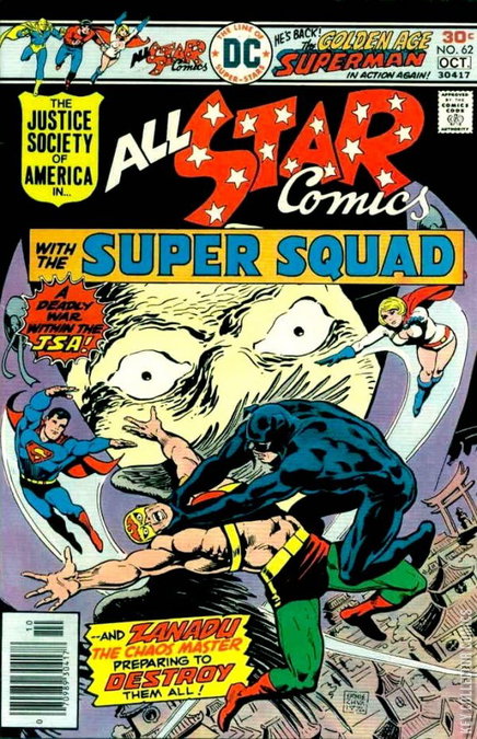 WHEN FALL THE MIGHTY Kent Nelson lies at death's door. The Justice Society of America are desperate to save Nelson's life. Doctor Charles McNider instructs the Star-Spangled Kid on using his cosmic rod to enervate Nelson's cells with solar energy. The treatment seems to stabilize Nelson's condition. An ankh appears on the medical monitors, which the team interprets as some kind of message from Nelson. The Golden Age Green Lantern relays the tale of how the wizard Nabu trained Nelson in the mystic arts. Training that led to Nelson taking on the mantle of Doctor Fate. The Golden Age Green Lantern opts to fly to Egypt, in the hopes of finding some solution that will save Nelson. The Golden Age Flash volunteers to go with him.Acting on ill feelings, the Golden Age Hawkman returns to Gateway City, to check on his wife. In the private museum of Carter Hall, Doctor Arthur Kliburn searches for Hall's latest acquisition, an ancient Lemurian, Zanadu, preserved in a block of amber.Kliburn finds the amber pooled on the floor, moments before he is killed by Zanadu. Investigating Kliburn's screams, Shiera Sanders finds Zanadu standing over Kliburn's horribly burned body. Hurling a piece of priceless pottery at Zanadu, Sanders turns to run. Zanadu stops time, then teleports away with Sanders, leaving behind their glowing afterimage. At the hospital, the strain of waiting finds Power Girl bickering with Wildcat, while Hourman shakes his head in disgust at both of them.Discovering Klyburn's body, as well as the afterimages of his wife and Zanadu, the Golden Age Hawkman activates his signal device, summoning the Justice Society of America to him. With the day's business completed, Daily Star editor, Clark Kent, decides to answer the summons, as the Golden Age Superman. At a bazaar in Egypt, a mysterious robed man barters for an elixir that will allow him to travel through time. The seller offers to trade the elixir for the man's horse. Refusing to part with his horse, the man opts on another course of action.The...