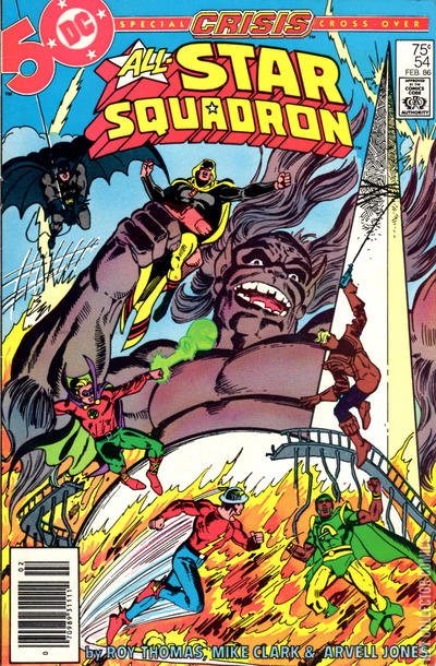 THE CRISIS COMES TO 1942! (AND VICE VERSA) Red skies continue to appear over 1942 Earth-Two as the All-Stars conclude their battle with the Monster Society of Evil. Meanwhile, in 1985, Harbinger sends Firebrand and a group of heroes from Earth's past to Cape Canaveral in an attempt to prevent a group on Native Americans from stealing a space shuttle.