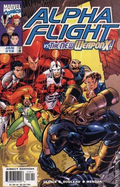 Alpha Flight discovers the new Weapon X project and take off after him. They find him draining energy from power transformers and nuclear power plants heading west. When they catch up to him, the original Alpha Flight shows up and they are not happy with the new team. It is also revealed in this issue that Flex and Radius are not brothers.