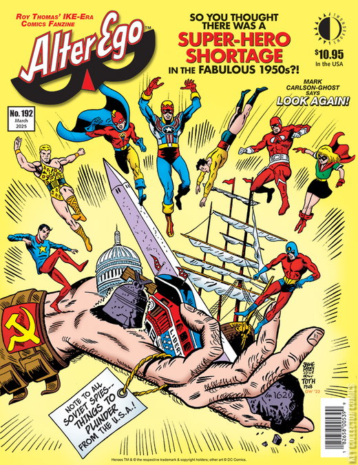 If you thought there was a super-hero shortage in comics between All-Star #57 and Showcase #4—Mark Carlson-Ghost says to think again! In Alter Ego #192, witness the mid-1950s super-hero revival featuring The Human Torch, Captain America, Sub-Mariner, Fighting American, The Avenger, Strongman, Nature Boy, Black Cobra, Phantom Lady, The Flame, Samson, Wonder Boy, Tomboy, and Captain Flash—with art by John Romita, John Buscema, Bill Everett, Joe Simon and Jack Kirby, Mike Sekowsky, Mort Meskin, Bob Powell, and other comicbook greats! Plus Fawcett Collectors of America, Michael T. Gilbert in Mr. Monster's Comic Crypt, and more!