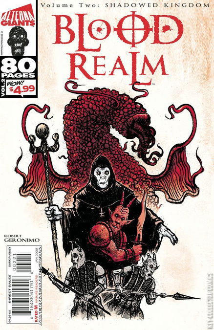 Eighty pages of giant-sized fun can be found in every Alterna Giants issue! Featuring the complete second volume of the epic dark fantasy Blood Realm: Shadowed Kingdom. General Gorn's deranged quest for the Black Heart, takes us across the horrifying lands of Mhordrin.