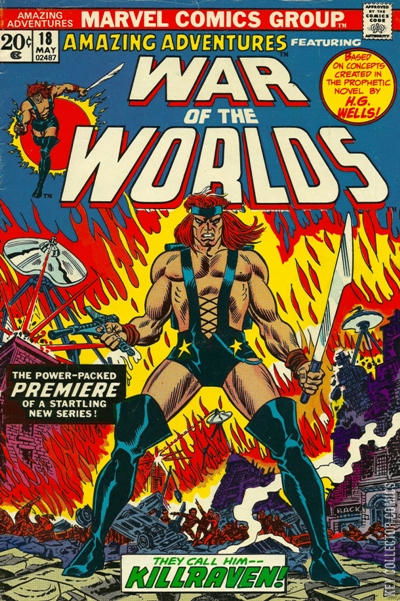 "The War of the Worlds!" - New York City, 2018 AD. Killraven fights his way through a subway tunnel against a gang led by Scrapper. He enters an empty Grand Central Station to find the Keeper, who unleashes a few mutants against him. Killraven blasts a hole in the Keeper's wall, thus emptying his weapon. While the Keeper shoots at him, he throws a sharp piece of machinery and impales his enemy. Astonishingly, the man thanks him and tells him a story about when Martians invaded Earth.