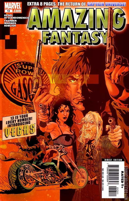 Introducing a new kind of hero named Vegas and a corner of the Marvel Universe you’ve never seen before! Welcome to the new borderland where bad guys don’t always wear colorful costumes, but that doesn’t make them any less deadly or dangerous. It’s a lesson Vegas learns the hard way when a super-powered gang, the Renegades, kills his sister. Now he’s out to even the score. Trouble is, Vegas doesn’t have any powers himself...or does he? Doesn’t matter. As far as Vegas is concerned, life’s a gamble and he always plays to win.PLUS: The return of Marvel’s most unique cosmic character -- Captain Universe -- in a two-part 8-page bonus story kicking off next month’s Captain Universe Event!!!