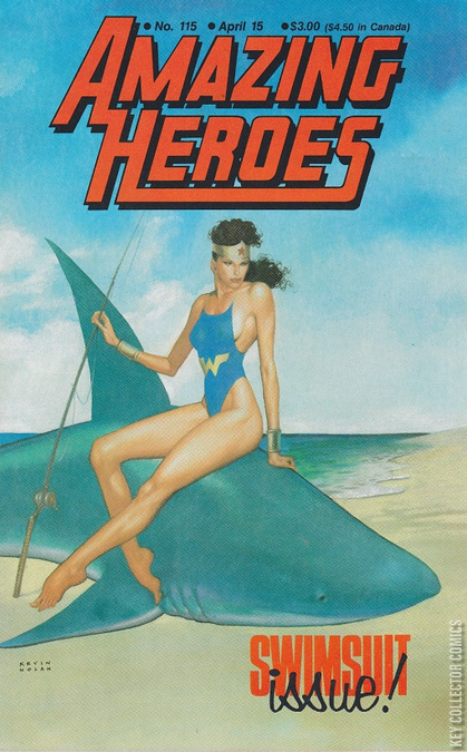 - The first of three swimsuit specials published by Amazing Heroes, #115, #138, #164, that led to an annual publication of pin-up art featuring superheroes in bathing suits from 1990 thru 1993
