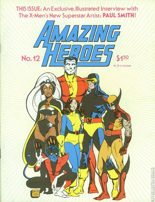 Home / Fantagraphics / Amazing Heroes / Amazing Heroes #12 Fantagraphics Released June 1982 Amazing Heroes #12 Add to Collection Want It Synopsis Issue 13 of 204 Add to Collection Buy it on eBay Buy on eBay Low $1 Mid $2 High $3 Synopsis Details Series Amazing Heroes Published Date June 1982 Pages N/A UPC N/A Cover Price N/A Final Order Cutoff N/A Creators Cover Artist Paul Smith Characters No characters listed. Price Guide Log in or subscribe to access detailed graded price information and market insights. Log In Subscribe