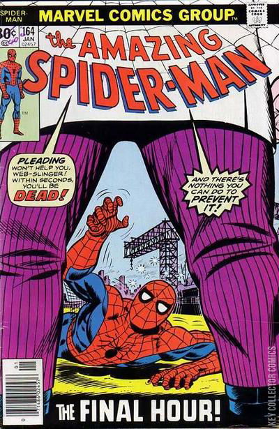 DEADLINE! The Kingpin has Spider-Man hooked up to a machine with his seemingly dead son, Richard Fisk. The Kingpin explains of his sons "death" during his brief time running a branch of Hydra and ultimately duped by the Red Skull. He explains that the device he's using -- the Vita-Drain Device -- to drain Spider-Man of his vitality and put it into his comatose son. The process is a success and Richard Fisk is revived, leaving Spider-Man in a severely weakened state. Spider-Man is then dumped in the streets to die, however, the wall-crawler manages to make his way back to his apartment where he changes back into Peter Parker. When Glory comes knocking, she notices that Peter doesn't look well and puts him in bed then rushes off to see a doctor. Peter gets up and leaves. He changes into Spider-Man and pays a visit to Curt Connors. After an examination, Connors uses his enervator device to restore Spider-Man. The recharge also causes a small explosion which catches Connors, however, he appears all right. However, the measure is temporary, and so Connors equips Spider-Man with a device that will reverse the effects of the Vita-Drain. Spider-Man tracks down the Kingpin and his family as at the city docks. There he uses the device given to him by Connors to take back his stolen life force back from Richard Fisk. This leads to a battle between Spider-Man and the Kingpin across the docks. Their fight ends when the scaffold they are fighting on falls apart, sending both men into the water. Only Spider-Man surfaces, who believes the Kingpin to be dead. The Kingpin's wife Vanessa, decides to let Spider-Man go free because, in spite of the fact that he may be responsible for killing her husband, the wall-crawler is responsible for bringing Richard back to life.