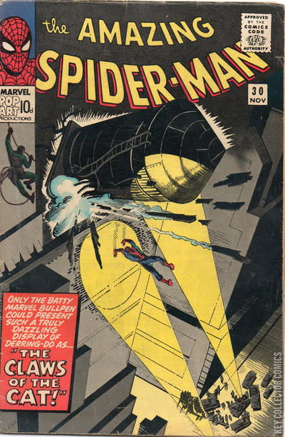 THE CLAWS OF THE CAT! Betty is slowly getting better and Aunt May sounds better, so Spider-Man decides to prowl around the city. He doesn't notice a man scaling a building who calls himself Cat Burglar breaking into an apartment. He breaks a safe open and leaves unnoticed. The apartment belongs to J. Jonah Jameson, who puts a reward of $1,000 for his capture. While swinging around, Spider-Man learns of the reward and goes to Jameson to antagonize and tease him. Jameson, so fearful of paying Spider-Man, assigns Frederick Foswell to find the Cat first. As Peter Parker goes out, he runs into Liz Allan who is in a hurry and tells Peter that Flash Thompson has been following her trying to learn where she works. Peter stalls Flash and then misdirects him. Peter is still concerned about Betty and calls to meet her. She drops a bombshell saying that Ned has proposed to her. Peter is ready to tell her about Spider-Man when she explains that she wants a stable home life without excitement and danger that an adventurer or a hero like Spider-Man would have. Peter, hurt by her subtle rejection of him leaves her in tears when he storms out. Though Peter returns home, Betty calls so much that he realizes he must clear his head and go out and fight crime. As he does, police have cornered the Cat Burglar and Spider-Man makes the chase. The Cat gets Spider-Man off balance and tries to bring a water tower crashing down on him. As he flees, the police corner him on the roof, and he throws a smoke grenade to hide inside a chimney where they eventually arrest him. Peter is dejected and cuts short any attempt at conversation by Betty as he sells more pictures to Jameson.