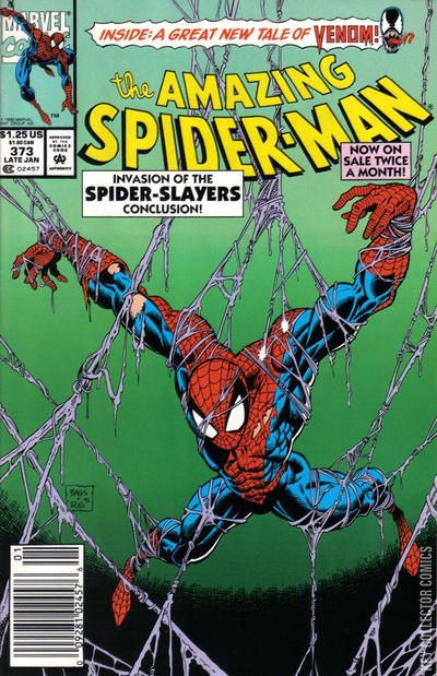 INVASION OF THE SPIDER-SLAYERS PART 6 - THE BEDLAM PERSPECTIVE When FBI agent Charles Shaddock kidnapped the people claiming to be his parents, Peter Parker followed them to an abandoned meat packing plant to save them. Falling from the rafters, Peter finds himself on a conveyor belt heading to an incinerator. Shaddock is unconcerned about killing another person if it means covering up his ties with the Red Skull twenty years ago. Faced with the death of their son immanent, Richard decides to do something. He tries to subdue Shaddock, only to be caught in a headlock. Although Peter has recovered and gotten off the conveyor belt at this point, Richard is now being held prisoner at gunpoint. When the Parkers agree to follow his order, Richard is let go. However, Peter knows that Shaddock is still going to kill them. Using the darkness as cover, Peter manages to slip on one of his web-shooters, Peter manages to snare Charles' foot with a web-line and trip him up. Peter quickly knocks Shaddock out, ending his threat. Once the authorities are called, Peter is pulled aside by Agent Abrahms of the FBI. Recognizing Peter as a Daily Bugle photographer, he asks Peter to kill this story as it could be embarrassing for the Bureau. Peter decides to make a deal. Giving Abrahams one of the tracking devices he took from one of Alistair Smythe's mechanical spiders. Giving him a cover story about it being a school project, he hopes the FBI can figure out how it works faster than he could. Abrahams agrees to help, telling Peter that he will be in touch. Later, Peter returns Richard and Mary to his Aunt May's house, where May owes her apparent in-laws a debt of gratitude for saving Peter. Pulling his wife aside, Peter tells Mary Jane that the encounter with Charles Shaddock seems to give his parent's story some credibility and perhaps he should give them a chance. Mary Jane then asks how Felicia is doing, after she was injured during Smythe's latest attack. Peter hasn't checked, as he wants to handle this on their own because Smythe almost caused the death of both Felicia and his parents. That's when he gets a call from Agent Abrahams and tells Mary Jane he needs to go. Mary Jane tells Peter that he should let someone else handle it, but he tells her that he has to do this on his own. As Peter leaves, Mary Jane goes outside for a cigarette. She wishes Peter could see how much the risks he takes as Spider-Man hurts her. She tries to justify her taking up smoking again, trying to convince herself that she can quit at any time. Using his old spider-tracer tracker to follow the signals to Alistaire Smythe's secret headsquarters. Sneaking inside, Spider-Man finds himself in a darkened room. Suddenly, the lights go on, and he finds himself surrounded by Smythe's fellow mental patients whom he broke out and confined to restraint chairs. That's when Alistaire Smythe arrives in his own motorized wheelchair. Spider-Man is shocked by how much he has changed since the last time he saw his foe. Smythe explains that after his last defeat at Spider-Man's hand, he was institutionalized. Seething with hatred, he picked the minds of the other patients to develop his army of Spider-Slayers. He then activates the weapons he built in his prisoner's chairs. Suddenly, wires fire out, carrying powerful electrical currents. Spider-Man wrapped up in them, but manages to pull the wires loose before he is electrocuted. That's when Smythe emerges from his wheelchair, much to Spider-Man's surprise. He explains that the development of the biorganic carapace on his outer body has brought him to peak physical perfection and repaired the damage done to his spine. Not only this but as the body begins to grow pincers and spikes, he reveals that he has turned himself into the "Ultimate Spider-Slayer". In the ensuing battle, Spider-Man is overpowered and slammed into one of the restraint chairs, freeing the man trapped in it. The wall-crawler asks him to call the authorities but is told that the room was locked tight the moment Spider-Man arrived in the room. With his newfound strength, agility, and built-in web-shooters, Smythe is able to subdue Spider-Man. Before he can kill him, the freed patient tries to convince Alistair to spare the wall-crawler, only to be killed himself. Seeing Smythe kill the man in cold blood angers Spider-Man. The hero manages to break free from Alistaire's webbing and knock him out with a few quick, yet powerful blows. Later, Peter takes Mary Jane out for dinner to make up for how he had been neglecting her of late. He tells her that Smythe has been incarcerated and his prisoners returned to the institution. With the tracking device, he and the Avengers were able to track down and destroy the rest of Smythe's tracking devices. Peter then tells Mary Jane that he has decided to reveal to his parents that he is really Spider-Man, confident that they really are his parents. It's a huge risk, but he points out that, much like their marriage, it is worth the risks. THE GETAWAY SCREAM! Inside a seemingly abandoned building, the authorities have Venom incarcerated following his recent capture. Trapped in a cylinder of sonic sound, Brock screams in pain. One of his guards is taking a great deal of pleasure turning up the intensity of the sonics that is keeping Eddie Brock and his symbiote incapacitated. The guard's colleague tells him to stop, turning the intensity down, much to Eddie's relief. Noticing that one of the guards is reading a newspaper. A particular photo catches his eye and he demands to see the paper. The guard scoffs at Brock, telling him to come and get it. That's when Eddie starts screaming in pain again. This is because Brock has sent one of his symbiote's tendrils through the sonic barrier where it has snaked around to the dial that controls the device. It manages to shut down the sonic perimeter, Brock is able to become Venom once again. Using his symbiote, he crushes the head of the guard who was tormen