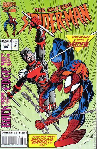 BACK FROM THE EDGE PART 4 - DEADMEN This story continues from Spectacular Spider-Man #218... Daredevil ambushes a couple of crooks in an alley, demanding to know where he can find the Owl. Although he gives the two thugs a rough beating, they don't know where the Owl can be found. After he is done, he tells Spider-Man to show himself as he is aware that the wall-crawler has been following him. Spider-Man comes down from the rooftops and tells Daredevil that he has come for a friend, calling him by his first Matt. However, Daredevil shocks him by telling the wall-crawler that he is no Matt Murdock and that Murdock is dead. He tells the wall-crawler to leave Murdock dead and buried. Spider-Man leaps in front of Daredevil and tells him that he is as well. Meanwhile, high above the city, the Owl stands atop a radio thinking to himself, unaware that he is being observed by someone else. When the Owl begins gliding across the city, he is intercepted by the Vulture. The Vulture tells the Owl that he is late for their meeting, and calls him "brother". The Owl tells him that they are not brothers, but the Vulture insists that time will tell. Meanwhile, in Pittsburg, Mary Jane finds that she cannot sleep on her sister's couch and decides to go out to the backyard. Being in the backyard brings up memories of her childhood. She remembers a time that she and her sister Gayle were playing in the backyard while their mother knitted. This moment was interrupted when her father, came outside to berate them for making too much noise. When young Mary Jane tried to explain that they were only doing what their father told them, he scolded her. This memory causes Mary Jane to cry. That's when he is joined by her sister Gayle who asks her to talk about what she is thinking about. Back in New York, Spider-Man continues to follow Daredevil, insisting that they talk. He has been watching Daredevil for days and isn't fooled by the media reports. He doesn't know who was buried, but he is certain that it is not Matt Murdock. Spider-Man explains that he came for Daredevil's help because he is the closest thing to a kindred spirit he has. He has come to find out how Daredevil managed to bury his past and start all over again. The Man Without Fear insists that he is not Matt Murdock, and tells the wall-crawler that even if he was Murdock, he wouldn't be able to help Spider-Man. Still, Spider-Man persists, insisting that he needs to bury Peter Parker for good. The pair almost come to blows, but Spider-Man reminds Daredevil that they both understand the needs of their double lives. This finally gets through to Daredevil who tells Spider-Man to come with him so they can pay their respects to the dead. He takes Spider-Man to Matt Murdock's grave, where he tells Spider-Man that if he was Murdock, still insisting that he isn't, his advice to the wall-crawler would be to kill Peter Parker and forget he ever existed. After this advice, Spider-Man still lingers, prompting Daredevil to ask the web-slinger what he wants now. Spider-Man suggests that they should hang out, piquing his interest when he suggests they go hunting the Owl together. At that moment at a derelict mansion, the Owl listens to the Vulture's pitch. The Vulture is offering him the Owl the opportunity to erase his past by killing everyone who had previously known him. To demonstrate this, he lethally injects a man right in front of the Owl. The horrifies Leland demands that the Vulture give the man the antidote. That's when the Vulture explains that there isn't one, and decides to give the man a mercy by breaking his neck. This horrifies the Owl even more, and he demands to know what the Vulture is planning. His would-be ally explains that he intends to infect a large number of birds and unleash them upon the city in order to kill everyone who knows who Adrian Toomes and Leland Owlsley were. Hearing this scheme, the Owl wants nothing to do with it and flees the scene. The Owl is eventually confronted by Daredevil and Spider-Man, who have come to bring him to justice. The Owl is not looking forward to a fight and warns the pair to not mess with him. As they listen to these threats, Spider-Man's spider-sense begins to go off. He is too late to stop one of the Vulture's infected bird dive bombs him. Although Spider-Man is only nicked, the web-slinger begins to succumb to the poison. While Daredevil goes to Spider-Man's aid, the Owl manages to escape.
