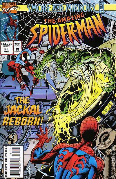 SMOKE AND MIRROS PART 2 - RESURRECTION! This story continues from Web of Spider-Man #122... The Scarlet Spider lays unconscious on the snowy ground somewhere in the Catskill Mountains. His body is discovered by the assassin known as Kaine. As Kaine examines the body, Scrier arrives and tells Kaine that the Spider is not dead. When Kaine tells Scrier to leave him alone, the cloaked figure assures Kaine that he has nothing to fear from him yet and suddenly disappears. Kaine is relieved as he was not ready to deal with Scrier at this time. Suddenly, he detects someone coming and ducks into the shadows again. Soon, Spider-Man arrives on the scene, finding his clone passed out on the ground. Suddenly, the Scarlet Spider comes around, and the two compare notes. Both have been drawn to this location by strange mental pictures of Peter Parker growing in a cloning tank. Spider-Man was able to find his clone thanks to images of the Scarlet Spider that appeared in his head. They are soon interrupted by a diminutive man in a Jackal costume named Jack. He tells them that he knows why they have been drawn here but refuses to tell them yet. The two Spiders chase after him but lose him in the swirling snow. However, what they find instead is a strange door that appears to be floating in mid-air. Examining it, they find handprint scanners and place their hands on them. When the door opens, they find Jack on the other side. Entering, the Scarlet Spider grabs Jack by the throat and demands answers. That's when Spider-Man's spider-sense goes off, but the warning comes too late to prevent them from leaping out before the door closes behind them. Jack then urges the wall-crawlers to follow him deeper into the secret facility, warning them that it is the only way they can see the light of day again. Jack takes them to a massive lab facility. Jack says that this is where they were all created and tells them that the Jackal will be joining him soon. Spider-Man finds this hard to believe because he saw the Jackal die. Jack points out that he saw the Scarlet Spider die as well, yet he is alive as well. While they are distracted the two Spiders are attacked by a degenerating clone called the Guardian. However, he is only lashing out due to the pain that runs through his body as he degenerates. Despite Spider-Man's desire to do something, Jack points out that there is nothing they can do and they watch helplessly as the Guardian dies in Jack's arms. That's when Jack removes his Jackal mask revealing that he is a Peter Parker clone as well. He is also suffering from degeneration, telling the two Spiders that this is the fate of all of the clones created by Miles Warren. That's when the Jackal makes his presence known. Emerging from a regeneration tank, saying that Jack and Guardian were his earliest failures, but Spider-Man and the Scarlet Spider are his greatest successes. Having enhanced his body to the peak of physical perfection, the Jackal is able to fight off both Spiders when they try to attack. He then has Jack give him some clothes. As he dresses he tells them that he is not a clone of Miles Warren, but the genuine article. He has spend the past five years restructuring his body into a perfect form. He goes on to explain that the Miles Warren that appeared to die during their last encounter was a clone that stood in for him. The Jackal's mocking finally gets to Spider-Man who attacks his foe. However, he is stopped by the Scarlet Spider, who tells Spider-Man that the only way they are going to get answers as to what is going on is if they let the Jackal talk. Seeing that Guardian is dead, the Jackal takes a moment to mourn his passing. As he does so, Kaine arrives in the room, watching things from the shadows above. The Jackal explains that they are all Peter Parker or at least genetic duplicates of Parker. That the Scarlet Spider's arrival in the Catskills revived them, but they suffer from degeneration and don't last very long. He leads them a chamber and suggests that both Spider-Man and the Scarlet Spider are both clones, saying that the real Peter Parker could be in the stasis chamber in front of them. Spider-Man thinks the Jackal is lying and tries to attack again. When the Scarlet Spider tries to pull him away, Spider-Man fights him off. The wall-crawler refuses to believe that he is a clone especially after he has gotten his life back on track and is expecting a child. This revelation comes as a surprise to the Scarlet Spider. However, he is furious at Spider-Man, telling him that he is unable to face the possibility that his being a clone is true. However, Spider-Man refuses to be afraid, pointing out all of the villains he has defeated over the years even in the face of impossible odds. When Spider-Man finally says he can take whatever the Jackal is going to make him face, the Jackal obliges by opening the stasis chamber. However, instead of another Peter Parker, the two Spiders are surprised to discover that it contained a woman that the Jackal claims is the real Gwen Stacy.