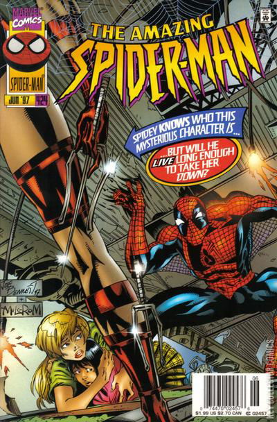 THEN CAME...ELEKTRA Elektra clashes with two members of the Hand, demanding to know why the ninja cult has returned to New York City. One of them tells her that they have come to eliminate the True Believers, a spin-off of the Hand that is viewed as betrayers to their order. Elektra decides to spare the ninja in order for him to send back a message to his masters. Elektra doesn't care if the Hand and the True Believers eliminate each other, but warns them against harming innocent people. Thinking to herself, Elektra figures that only a fool would put himself between two warring cults. At that moment, Spider-Man loses his grip on his webbing as a pounding headache sets in. Cursing himself for being so stupid, the wall-crawler scrambles to break his fall and lands on a nearby rooftop. There he thinks about how he has been having these headaches ever since Morbius the Living Vampire bit him recently and how it has been affecting his performance recently. He thinks how this led to his recent and humiliating defeat at the hands of Electro. Thinking about how he was forced to beg for his life and how Electro must be laughing at him now, Peter angrily punches a chimney, turning it to rubble. While at the Daily Bugle, J. Jonah Jameson is delighted by the current front page story about the True Believer's recent attempt on Joe's life. The only thing he is upset about is how there was no way to connect Spider-Man to the mysterious Black Tarantula. That's when Joe reminds Jonah that Spider-Man was actually responsible for saving his life. When Jonah tries to get Ben Urich's thought on the story, Ben points out that the ninjas might come back and target them and their families for publishing this story. At that same moment, Madame Qwa -- the leader of the True Believers -- is furious to read the story in the paper and fears the Black Tarantula will punish them for their failure. Yano points out that the failure falls on Meiko Yin -- the Believer's Dragonfly -- as she was the one who provided Joe Robertson with the information for the newspaper story when she was supposed to assassinate the newspaper man. Despite Yano's demands that Meiko to eliminated, Madame Qwa believes that -- despite Yin's failure -- she is destined to be a great assassin. As penance for her failure, Meiko is ordered to murder her cousin Angela Yin. Meiko is shocked to be ordered to do this, but in order to save her own life and get back into the good graces of her master, Meiko agrees to carry out this order. As the Dragonfly leaves, Madame Qwa warns Meiko that another failure will not be tolerated. Meanwhile, Spider-Man returns to his home in Queens and feels awful and needs time to rest even though he needs to track down Electro and also learn what he can about Meiko Yin from her cousin Angela. That's when Anna Watson comes barging into Peter's room to learn what is making noise upstairs. In order to protect his double identity, Peter quickly leaps into bed and uses the blanket to cover up his costume. After explaining that he hasn't been feeling well, Peter asks Anna not to come barging into their bedroom without knocking first in the future. Because he was short with her, Peter apologizes, saying that his migraines have been really affecting his moods. Hearing that Peter isn't fell, Anna promises that she help Peter get well again. At that moment, the Rose is visited by Elektra, and her sudden arrival is anticipated by the mobster as he has heard about her attacks on members of the True Believers. Although the Rose invites her in to have some tea, Delilah is quickly at the defense of her employer. Although the Rose applauds Delilah's loyalty, he tells her to stand down as he is certain Elektra will eliminate the ninja problem they have been having lately. Later that day, Peter Parker finally manages to get Anna to leave him to "rest" so he can slip as Spider-Man and try to make up for lost ground. Meanwhile, Meiko has paid a visit to her cousin Angela, who tells her that Peter Parker has been calling for her for more information about the True Believers. While Angela is busy preparing a meal, Meiko grabs a knife off the counter and prepares to kill her cousin, but can't bring herself to do it and flees the apartment, unaware that she is being observed by Yano. At that same time, Elektra is traveling across the city, questioning her decision to ally herself with the Rose, even if it is temporary. While simultaneously, a mysterious being approaches Spider-Man and tips him off of an upcoming battle between Elektra and the True Believers that is about to go down at the west side train yards. A short time later, Meiko arrives at the train yards and begins to wonder what she will do next after failing to follow through on Madame Qwa's orders. That's when Yano and an army of ninjas ambush her intent on eliminating her life. Not far away, Elektra is rushing to the scene of the battle when she runs into Spider-Man. After some rather embarrassing exchanges on Spider-Man's part, he admits that he has been having a bad day and the pair agree to work together. While at the Daily Bugle, J. Jonah Jameson decides to take the potential threat from the Black Tarantula seriously and abruptly leaves the office so he and his wife can leave town. That's when Joe Robertson gets a phone call from his wife, Martha. When he tells Martha about what's going on, she points out that Jameson has the right idea and tells Joe to come home, but he still can't bring himself to abandon the Daily Bugle. Back at the train yards, Meiko surrenders to Yano who tells her that she will die for her failure, and they will also kill her cousin Angela. Before the True Believers can kill the disgraced warrior, Spider-Man and Elektra arrive on the scene, battling the ninjas and giving Meiko a chance to defend herself against Yano. As the battle rages, Spider-Man begins losing his temper and fighting more savagely as the True Believers are keeping him from doing what he re