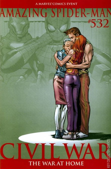 THE NIGHT THE WAR CAME HOME, PART ONE After rushing to the aftermath of the Riverbank Massacre to offer aid to its victims, Peter travels with Tony Stark to Washington, D.C. and the White House, where the enactment of the Super Hero Registration Act appears imminent. As the Marvel Universe braces for the implications of legislation that will forever change the societal status of super heroes, Peter will have to make a very important personal decision—one that just might be the most important decision of his life! CIVIL WAR TIE-IN